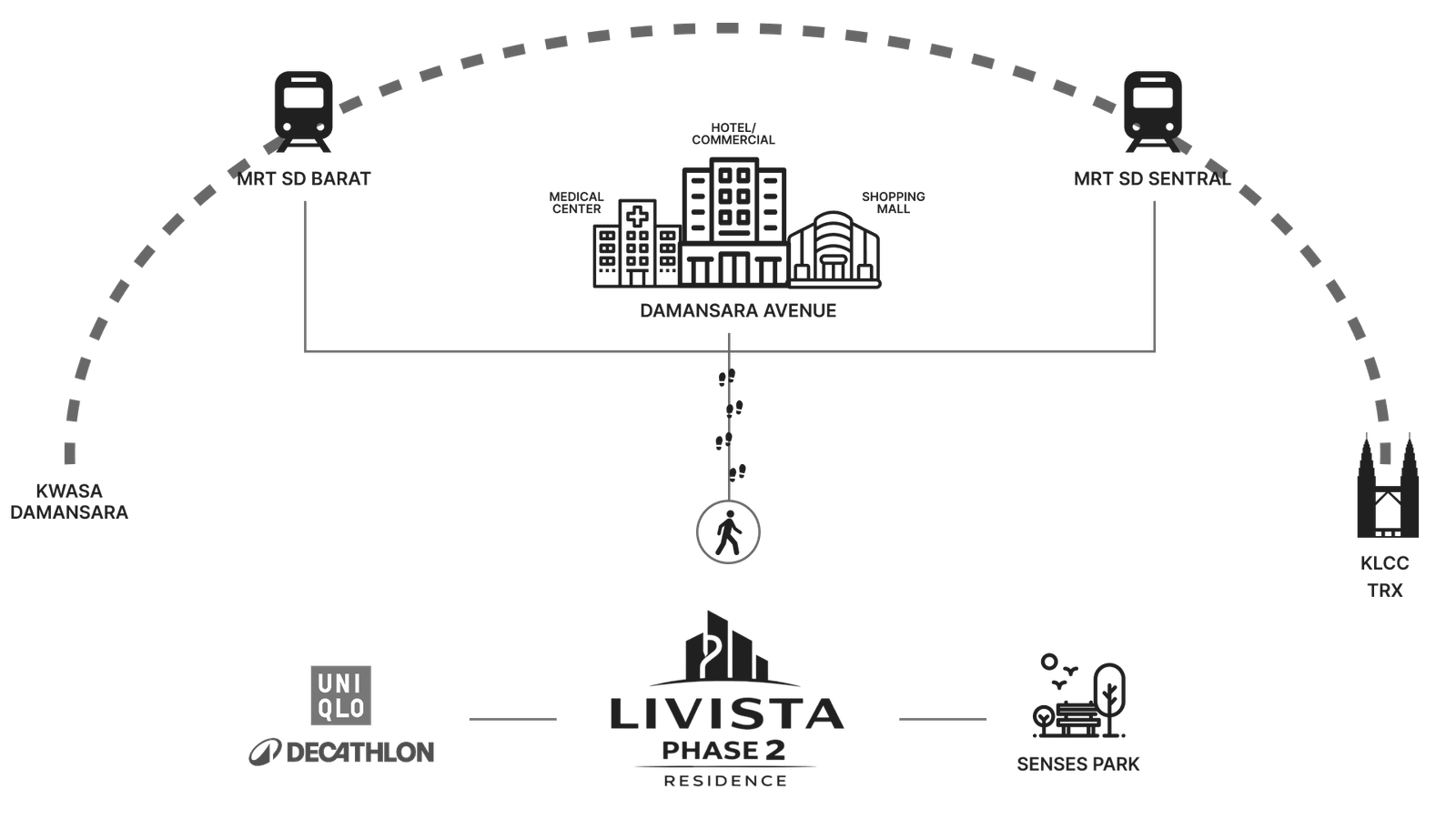 The development is strategically located near MRT stations, providing convenient connectivity to Kuala Lumpur, Petaling Jaya, and key employment hubs.